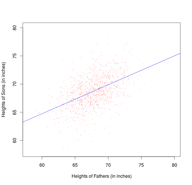 4. What does the regression line predict for the height of a son whose father is 75 inches tall?