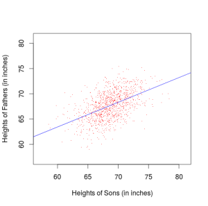 1. Use this data to create a scatter diagram with regression line, treating the heights of the sons as the dependent variable.